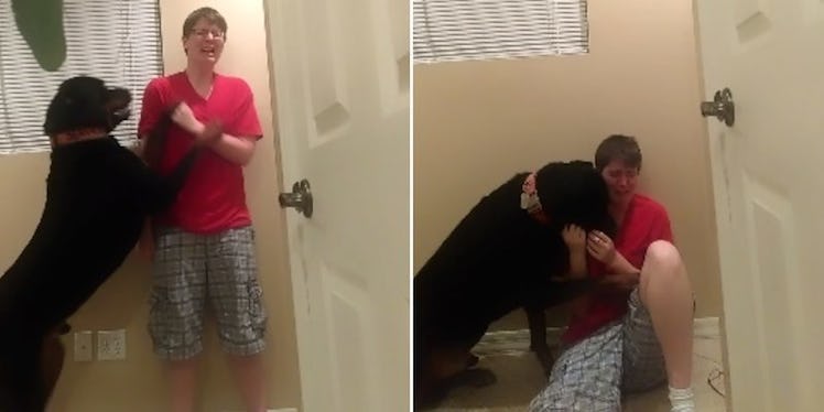 A heartbreaking video, uploaded earlier this month by Danielle, shows how her service dog, Samson, helps her cope when she has an Asperger’s-related meltdown.