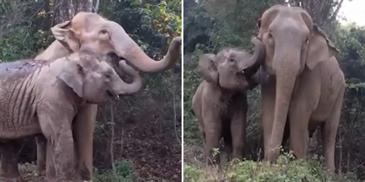 This one comes to us courtesy of Thailand's Elephant Nature Park, and features the heartwarming moment two elephants --mother and child -- reunite after four years apart.