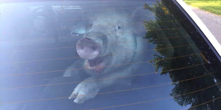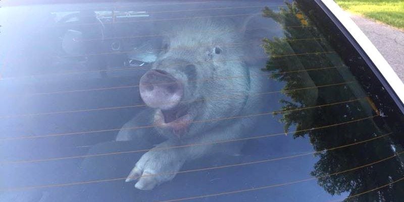 The pig's owner volunteered to clean the filthy squad car.