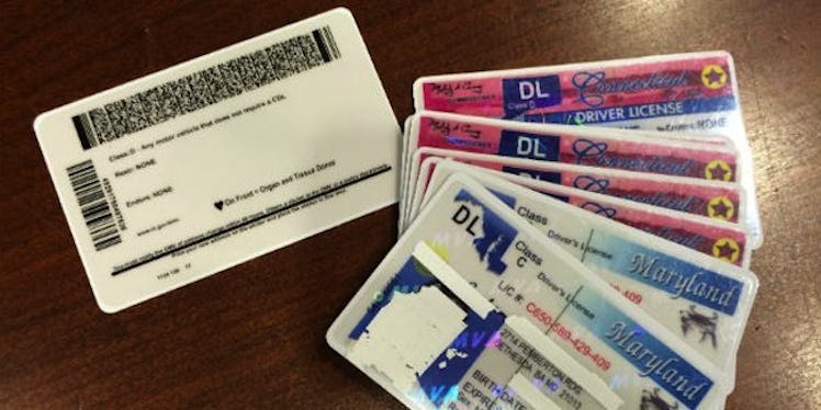 Inside was a small picture frame with eight drivers licenses resembling those issued in Connecticut and Maryland taped to the back.