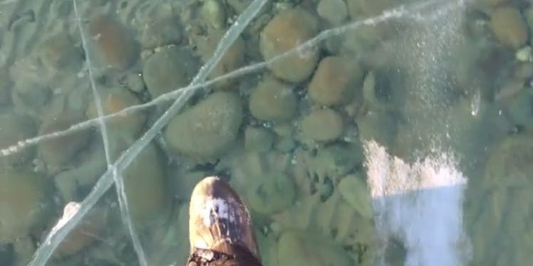 Frozen Lake Is So Clear It Looks Like This Guy Is Walking On Water (Video)