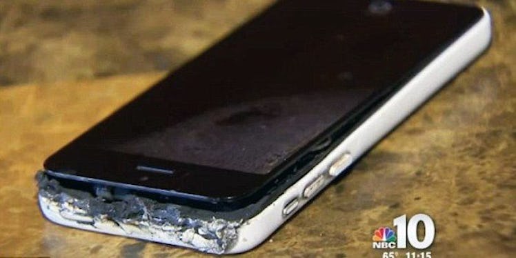 An iPhone 6 caught fire in the pocket of an Arizona man in October 2014, and an iPhone 5c, owned by a middle school girl, exploded in January 2014.