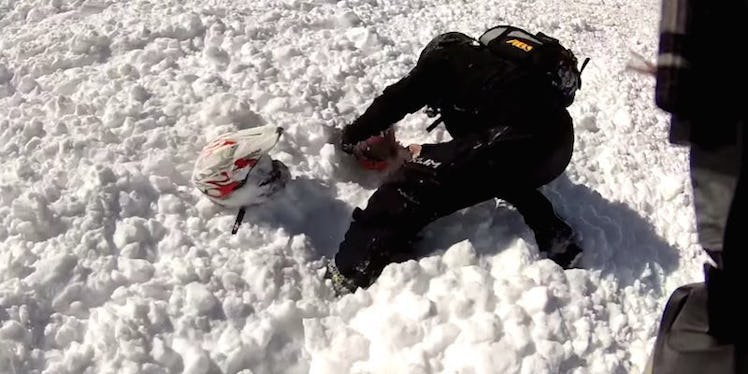 It was a minor avalanche, but it managed to bury one of the men as he drove up a steep hill. His buddies then sprung into action and sped over to rescue him.