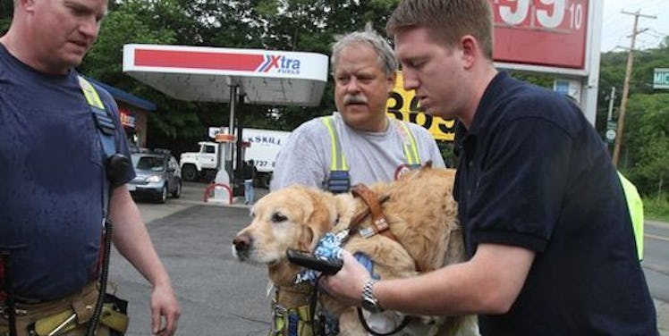 Yesterday, a service dog named Figo became a local hero in Brewster, New York after bravely putting his life on the line to save his blind owner, Audrey Stone.