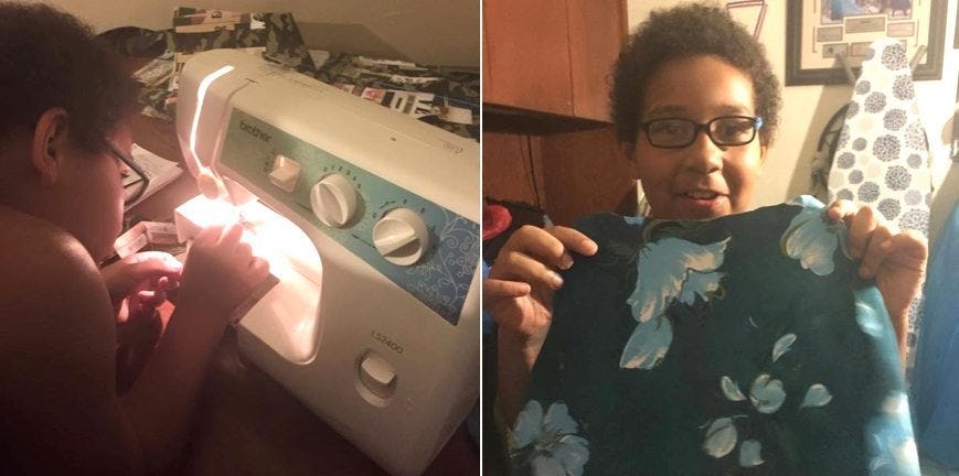 An Arizona boy is using what little money he has to make clothing for those who can't afford it.