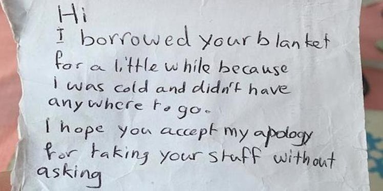 Homeless Thief Left A Note When Returning The Blanket He 'Borrowed'