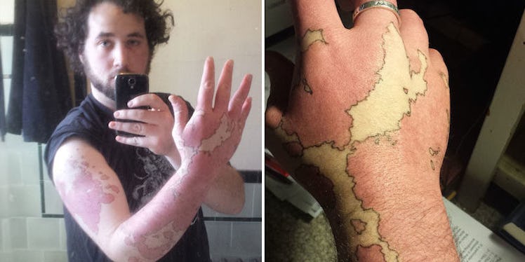 Recently, he used a pen to outline the borders of his birthmarks on his arms and hands, creating an incredible body art piece that he calls his “birthmap.”