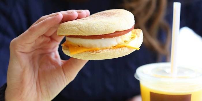 In addition to McCafé drinks, customers can score an Egg McMuffin, Sausage McMuffin with Egg, Sausage Burrito, Sausage McMuffin, Hash Browns, Pancakes, Fruit & Maple Oatmeal and Fruit 'N Yogurt Parfait until the restaurant closes.