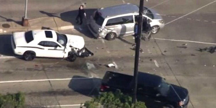 He reportedly sped down the road for about 20 minutes before ramming into Jessica Leismann's minivan at a busy intersection in a school zone.