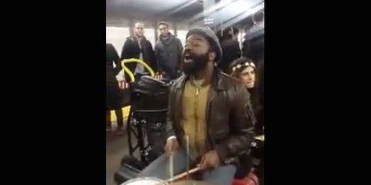 People waiting to catch the subway Saturday night in Brooklyn got a lot more out of their $2.75 than just a ride into Midtown Manhattan. One performer managed to inspire the entire station with his incredible range in voice, unique sound and awesome use of the drums.