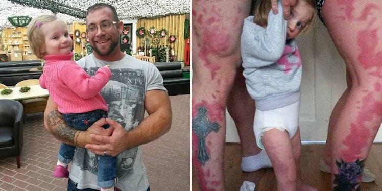 Two British parents have gotten tattoos of the same red birthmark that covers their daughter's body so she wouldn't feel alone.