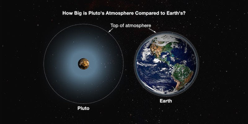 Pluto's atmosphere, it seems, is at least an awe-inspiring 350 times larger than the volume of the entire planet. That makes it even larger than our own beloved planet, atmosphere included.