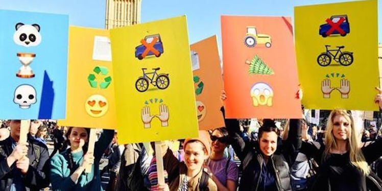 During the People's Climate March in London on March 7, protesters held signs adorned with emoji to protest our current environmental policies.