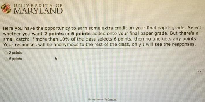 Students were told they could select to receive either two or six extra points as a final grade paper on a paper.