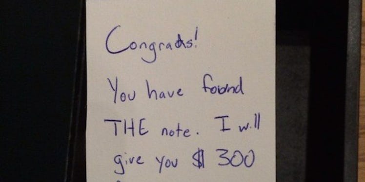 Dang photographed the strange message and posted the image to Reddit, and it quickly garnered interest. Over 1,000 users commented on the photo, many speculating as to why someone would offer a stranger $300.