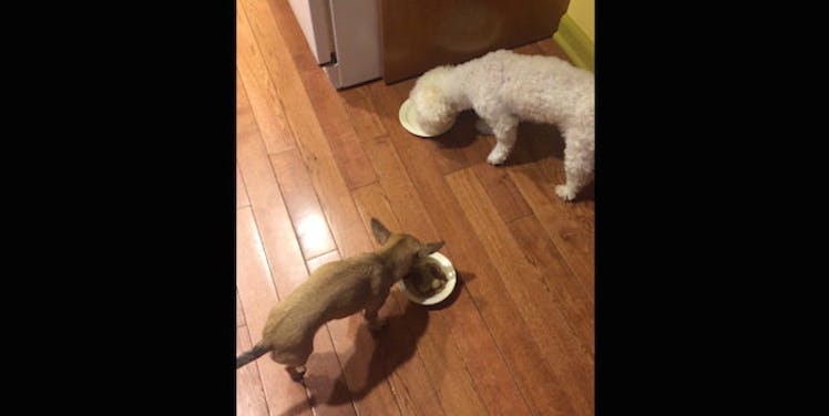 Adorable Rescue Dog Moves Her Bowl Next To Her Friend At Every Meal (Video)