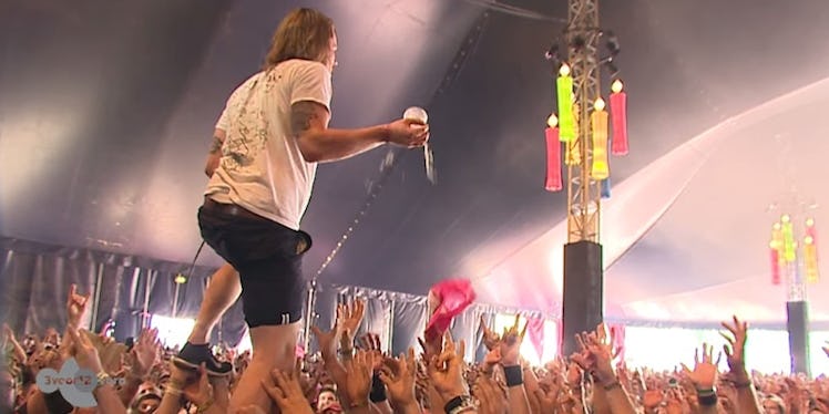 At a music festival in the Netherlands, singer David Achter de Mole of the band John Coffey was crowdwalking -- a more leisurely and dry version of crowdsurfing -- when a fan thought he looked thirsty and chucked a beer cup at him.