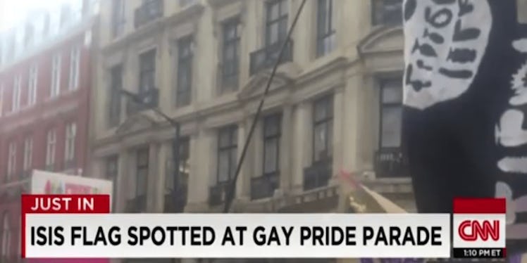 CNN mistook a drawing of sex toys for the flag of the Islamic State while covering London's gay pride parade on Saturday.