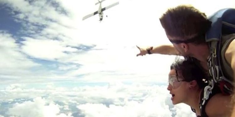 Check out the terrifying footage up top (and go ahead and delete skydiving from your bucket list -- we did too).