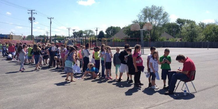 The school district posted a photo on Facebook of the insanely long line of students waiting to get his signature, and it didn't even include the other 200 yearbooks he signed that week.
