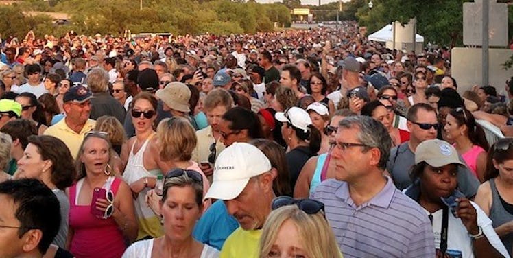 You can sense the crowd absorbing the human bridge event. #charlestonshooting .@postandcourier pic.twitter.com/9ajmahLR3X — Matthew Fortner (@MatthewFortner) June 22, 2015