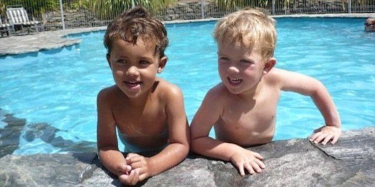 Xavier is pale while Jayden is more tan, like their Samoan mom.