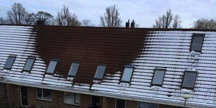 Daily Mail reports the city of Haarlem had experienced snowfall one day, but a house's roof in town looked like it hadn't been touched by a single flake.