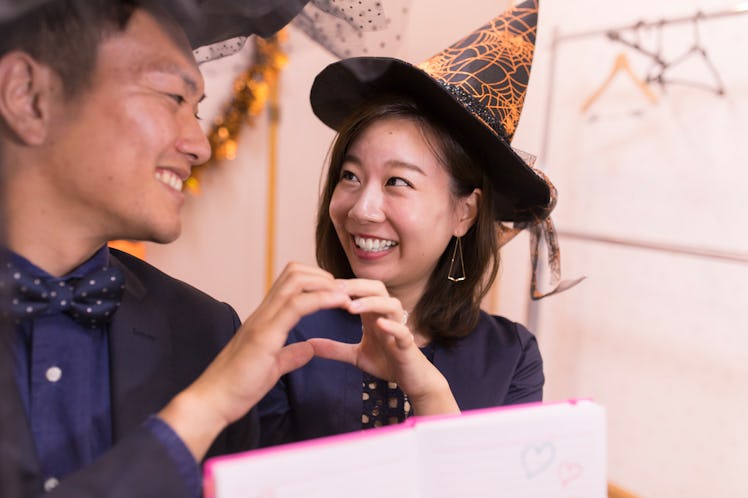 For Halloween lovers everywhere, there's nothing better than when Oct. 31 lands on a Saturday, which just so happens to be the case in 2020. Something about having to rush home from work on a weekday to throw together your costume, only to deal with a killer hangover the next day, can really put a damper on things. Unfortunately, 2020 has been full of dampers, and due to the coronavirus pandemic, celebrating at home with your partner is probably the safest bet this year. Fortunately, there are plenty of at-home Halloween date ideas that will ensure you and your SO still have a fun and festive evening.