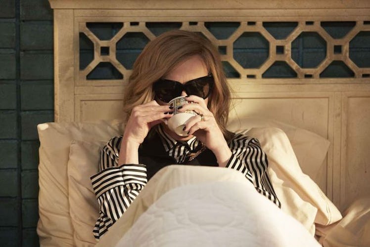 Like any true style icon, Moira Rose has impeccable fashion 24/7 — even in bed. Her pajamas not only match but also involve vests and brooches. She looks nice enough to conduct a business meeting from the comfort of her motel bed, which, TBH, doesn't sound too far off in 2020.