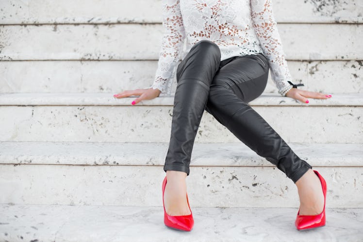 If you're looking for faux-leather leggings in bright (or even metallic) colors, look no further than this pair from J2 Love. The material is extra high-waisted and a comfortable blend of stretchy and structured. Best of all, you can get them in bright red, metallic gold, or shiny green, and they're offered up to a size 5-plus.