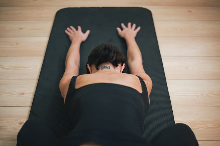 We live in a time when it's basically a given that, no matter what you do for a living or how you spend your days, you can likely be found hunched over a computer, or craning your neck to read something on your phone. It is, quite literally, a pain in the neck. The physical discomfort that inevitably comes with being glued to technology 24/7 has essentially become a tolerated nuisance — something that's begrudgingly accepted, or temporarily masked with a couple of pills. But when the meds don't cut it, a few yoga poses for neck pain may just do the trick to soothe those throbbing sensations and help you release the tension you're holding in your upper body.