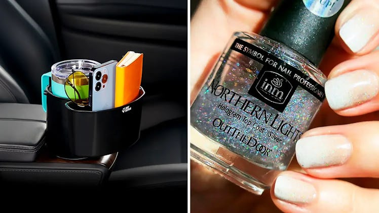 Great for oversized tumblers or coffee mugs with a handle, this cup holder expander sits in your car’s existing console but raises it up and sits to the side, so your other cup holder is still accessible. What makes this piece stand out, however, is the little side cup that’s great for your phone, sunglasses, pens, or whatever else you may need close by.