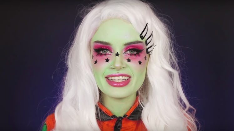 In terms of makeup looks not inspired television shows or movies that are trending, cute clown makeup tops the list and is up 370% in searches. Weird? Weird. But Halloween is all about the bizarre and unexpected so bring on the adorable bozos! Next on the list is pretty clown makeup, which is up 280%, so if clowns aren't your thing (read: if you're terrified them), 2019 might be a good year for you to skip Halloween. Thanks to the whole Storm Area 51 thing, Alien makeup is up 146% — I cannot wait to see how people interpret alien makeup, it's bound to be cool and creative AF. Rounding out the list is Mime makeup simple, up 153%; and porcelain doll makeup, up 153%.