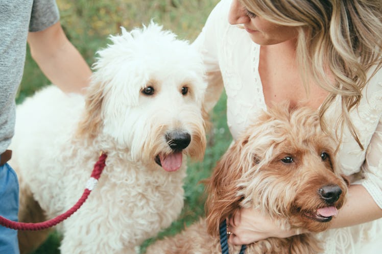 Look at the front one's tight curls! When labradoodles aren't giving us Nick Jonas hair circa 2006 flashbacks, they are serving adorable looks of their own. Their eyes may be hard to find under all that hair, but once you do find them, they are still out here stealing our dog-owner hearts.