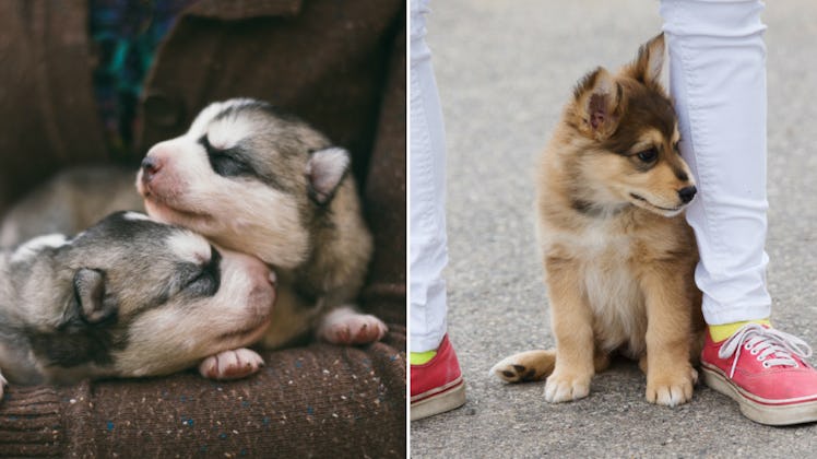 Looking into the eyes of any fur baby will instantly make you go all mushy. They always have this look of love in their eyes. Plus, they're so flippin' adorable, you just can't get over feeling all the things. But huskies are another category of cuteness altogether. They can have such bright eyes, with the most majestic face — yet still be a total goofball (a goof that you love with all your heart, that is). And as with most dogs, their younger years are honestly the best, and pictures of husky puppies will make your day, your week, and possibly even your whole month.