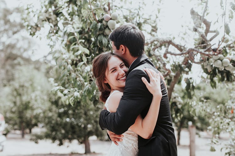 "We had our wedding at a ranch (see Canyon Fruit Ranch) and they sell apples and honey during this time of year at a stand,” Sarah tells Elite Daily. "The stand was open during our wedding and some of our guests got to taste apples during our cocktail hour. That was very fun!"