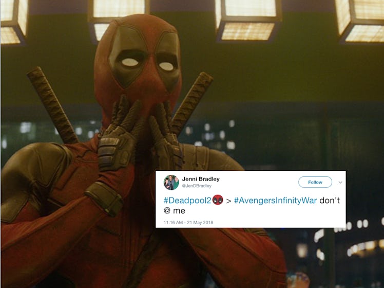 After months of waiting, Deadpool 2 is finally here. The not-your-average-comic-book-movie took down Avengers: Infinity War at the box office in its first weekend, because apparently the only thing that can dethrone a Marvel movie is another Marvel movie. Just as Ryan Reynolds' Deadpool is funnier than his superhero counterparts, Deadpool fans are generally funnier than the average movie-goer (or at least they think they are), and after watching the new sequel, many have taken their talents to Twitter. These tweets about Deadpool 2 will make you want to run to the nearest theater ASAP — that is, if you can stop laughing long enough to buy yourself a ticket.