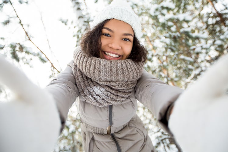While winter's not my favorite season — mostly due to the chilly temps — you wouldn't be able to tell by the huge smile I have plastered on my face in my wintry pics. Snow makes for the perfect backdrop, so whether you're like me, and prefer warmer weather, or you actually prefer a bit of frost, winter selfies are inevitable. Don't act like you haven't maximized the utmost effort to get a solid selfie with your beanie cap and coffee cup. I mean, you don't want all of those cute and coordinated winter outfits to go to waste, do you?