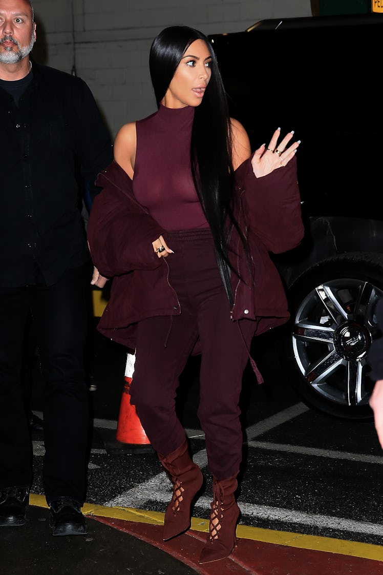 A crop top-and-jogger set mixes sexy with supreme comfort. If you’re at your most confident when you’re feeling a bit sensual, there’s nothing wrong with showing a little skin. Definitely more of a Kardashian look, sweatpants and a tiny shirt are a great way to play with proportions.