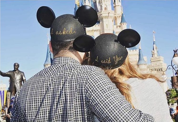 I have to confess: I'm a softie when it comes to romance, so proposal photos always make me a little weepy. I always appreciate photos where the couples do something a little different by popping the question in a unique, and dare I say, magical way. Like, oh, I don't know... getting engaged in “The Happiest Place on Earth!” What could possibly be sweeter than starting your life together in the place where "happily ever afters" are born? That's next-level romance goals. Don't believe me? Then these photos of proposals at Disneyland and Disney World are about to change your mind forever. That’s because these photos are basically a example of where the real-world magic of finding a soulmate (and declaring it proudly to the world) and the fairytale fantasy magic of Disney come together. Not to mention, it's probably something to keep in mind if you just so happen to be asking your partner to marry you and you really want to make the moment unforgettable. (Especially if, like me, you have a serious case of Disneyland fever.)