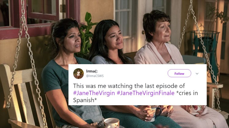 In July 31's series finale, Jane tied the knot with Rafael after a few obstacles briefly delayed their special day, so fans really don't have much to complain about when it comes to this conclusion. The episode was also packed with throwbacks to Jane the Virgin's early days. These little details stirred up fans' nostalgia and even more heartbreak about bidding farewell to the Villanuevas and company. On Twitter, viewers commiserated about the episode's finality and nods toward the show's history. Some fans also tweeted about what the show meant to them.
