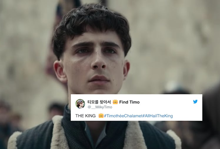 People are especially excited to bow down to Chalamet in all his royal glory. After roles in films like Call Me By Your Name and Lady Bird, Chalamet has already cemented his place as both a talented actor and a hearthrob. The 23-year-old American actor does a British accent for the role in The King, and his fans are loving it.