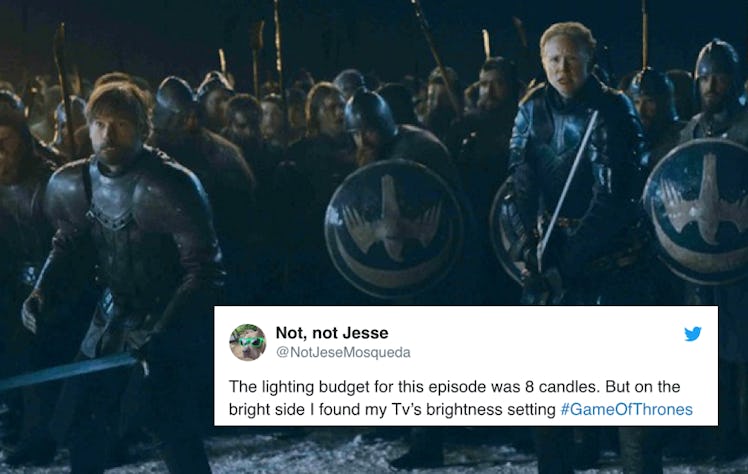 The Battle of Winterfell in Season 8 Episode 3 takes place outside and at night, in a time and place where artificial sources of light are not really a thing. So it makes sense that the characters don't have a lot of light to work with. That said, it's also a TV show, and the creators could have maybe made the viewing experience a little easier on audience's eyes. But alas, audiences were forced to squint their way through the movie-length episode. At least fans got some really funny tweets out of it.