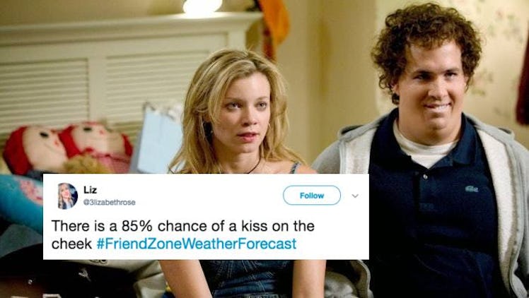 If you've ever been in the friend zone, read along with these tweets and laugh before you cry. If you've never been in the friend zone, um, first of all, who are you?? Second of all, LUCKY. But third of all, read along and get a real flavor for what it's like when the one you love doesn't love you back in quite the same way. In the tweets below, people went ABOVE AND BEYOND in relating what it's like to be in the friend zone to a weather report, from clever puns to straight up sad forecasts that remind you how cold and lonely unrequited love really can be.