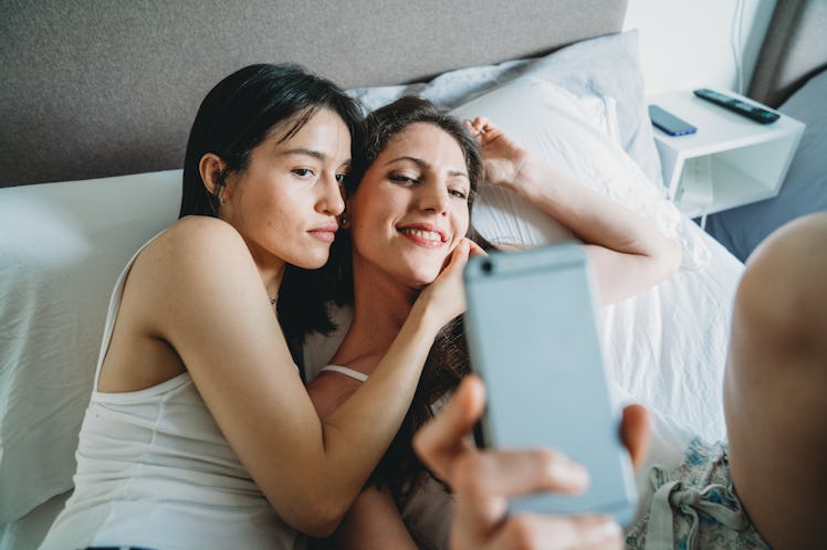 If you and your boo have exhausted your Netflix queue, tried (and failed) to make sourdough bread, and hooked up out of sheer boredom... then maybe it's time to try something new: taking sexy photos. (Unless you and your SO are old pros at snapping hot selfies. If so, then keep up the good work.) Having hot-and-heavy photoshoots together is a fun way to explore your sexuality and — if the results aren't rated R — you can use them to spice up your IG grid. For those in need of Instagram captions for sexy photos with your partner, you've come to the right place.