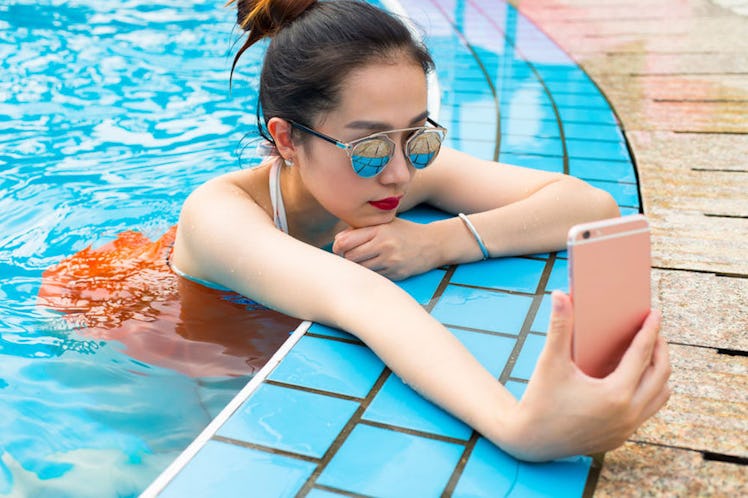 For some of us, summer is meant for soaking up the sun and doing everything in relaxation mode. It's meant for not dealing with any BS, unless it's a bunch of bikinis and sandals, and aimlessly scrolling on social media from the comfort of a lounge chair. Most importantly, it's meant for hyping yourself up with #fire selfies and glowing 'Grams that make you feel like magic, a million bucks, or a brightly-colored sunset in the night sky. Now, you've already thought about the different angles you want to get and the types of lighting that will illuminate your lens. But you still need some captions for poolside thirst trap pics, because you're getting kissed by the sun this summer.