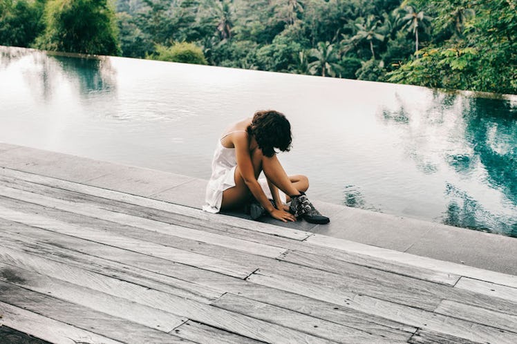Before I get into those captions, though, I want to have a conversation about where you're wandering to. Do you have a one-way plane ticket to the palm trees and jungles in Bali? Are you vacationing on the beautiful Italian coastline, surrounded by bowls of tasty pasta and pastel-colored houses that are nestled into the cliff-sides? Maybe you're going on a staycation and have a reservation at a local hotel that's been decorated with lounge chairs and gives you access to massages, facials, and lots of relaxation time. Odds are, if there's a pool that stretches to the skyline there, I want to go, too.