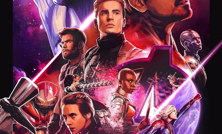 The Dolby Cinema poster is the most stylistically different from all of the other artwork that Marvel has released for Avengers: Endgame. The illustrated poster pays homage to the movie's comic-book origins, and it also teases some important elements of Endgame — the spaceship that Tony Stark and Nebula are gazing at depict the place where they will begin Endgame, and Captain Marvel's position in the purple-y backdrop with Thanos could be a clue that she is the key to defeating him.