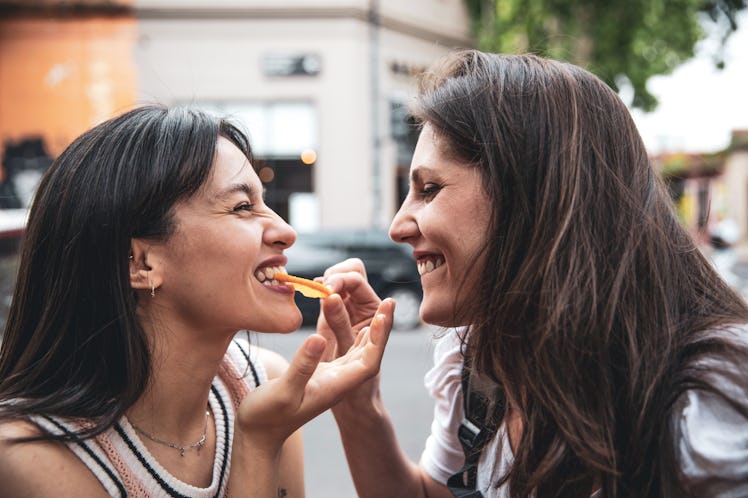 Leo and Libra are known for being the life of the party, so chances are, their love story will start with making eye contact from across a crowded room. A charisma bomb goes off when they connect, as both signs are all charm and warmth. Once Leo makes up their mind about someone, they aren’t afraid to go all-in on love, and Libra’s connection to Venus means they're true romantics. Plus, their appreciation for aesthetics gives Leo the ego boost they crave. This is what a power couple looks like.