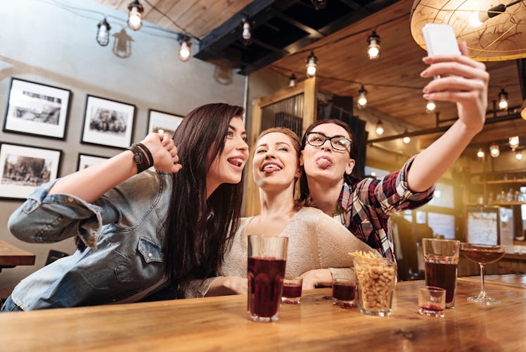 Let's be real: There are some weeks when your work schedule can be rough stuff. Maybe you're in back-to-back meetings all day long, or you have an important presentation you're working on after hours. The only thing that's getting you through it all is the glorious happy hour at the end of the tunnel. If you're 21 or over, going out with your work friends for a couple of drinks is not only a fun team bonding experience, but you deserve to treat yourself after all the work you've accomplished. Needless to say, you need some clever happy hour captions for your group sippin' selfies.